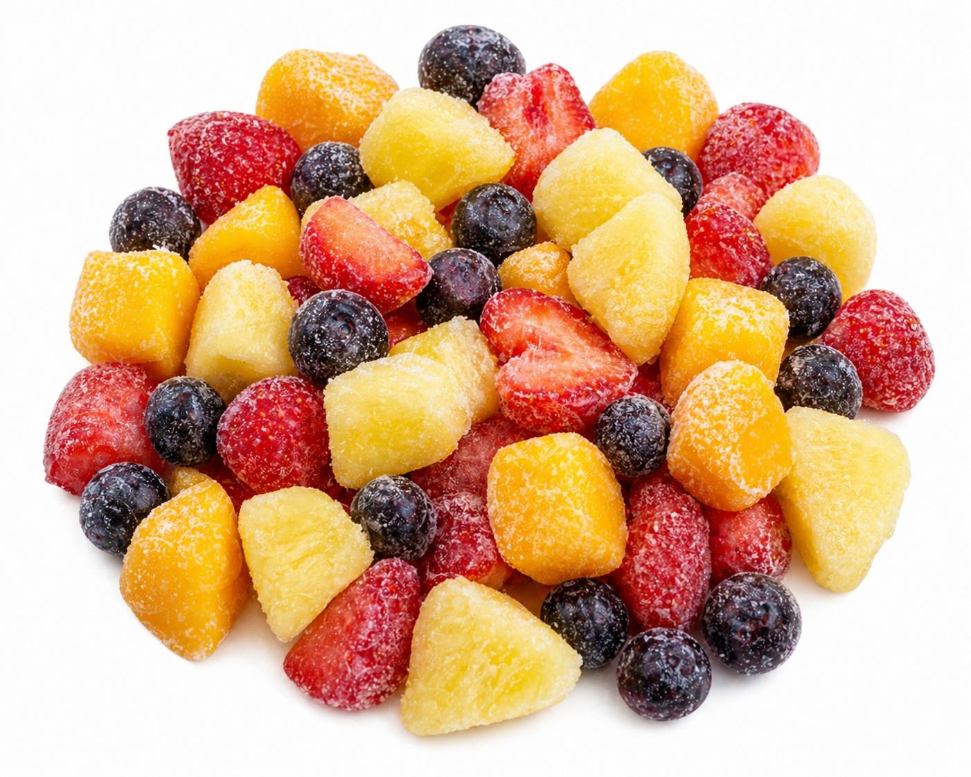 Mix tropical con mango, arándanos, frutilla slice y piña 100% natural y sin preservantes. Cosechados en su punto óptimo de maduración, congelados mediante sistema IQF (Individual Quick Frozen) y sometidos a rigurosas selecciones para asegurar la mejor calidad.